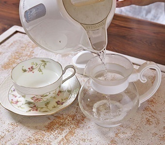 1.あらかじめティーポットとカップはお湯で温めておく