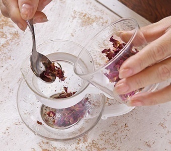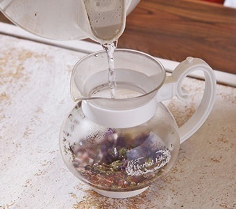 2.人数分のハーブ(約3グラム又はティースプーン山盛り1杯)をポットに入れます(1人分)