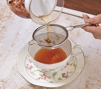 ポットからカップに注ぐときハーブが入らないようにします。