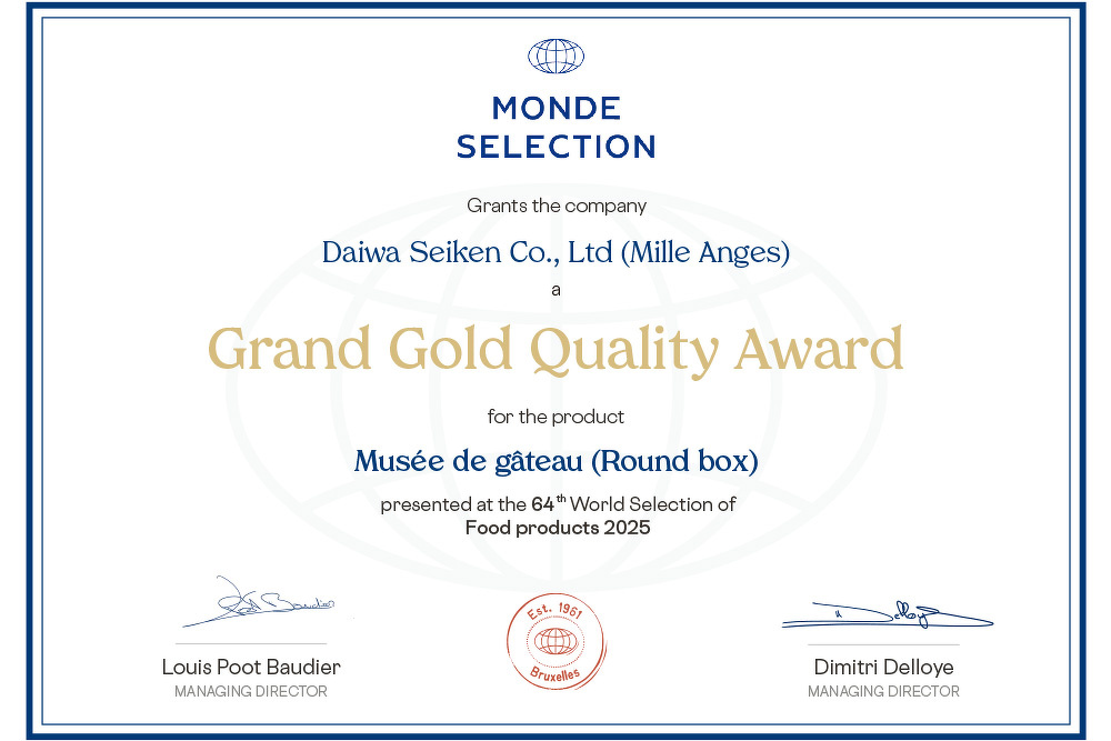2015年から10年連続で金賞を受賞し、この度モンドセレクション2025でエントリーした9商品すべてが最高金賞(GRAND GOLD)を受賞しました。